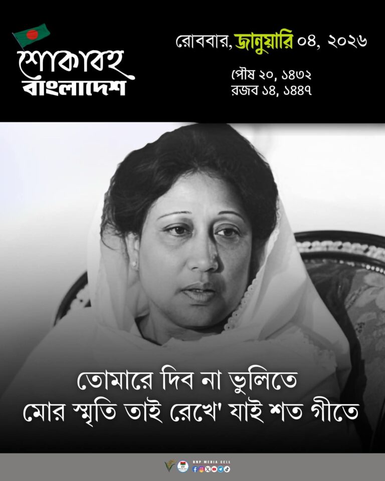 শোক বার্তা সাবেক প্রধানমন্ত্রী বেগম খালেদা জিয়া আর নেই বাংলাদেশ জাতীয়তাবাদী দলের চেয়ারপারসন ও সাবেক প্রধানমন্ত্রী বেগম খালেদা জিয়া আজ ভোরে ইন্তেকাল করেছেন (ইন্নালিল্লাহি ওয়া