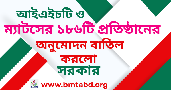 শিক্ষার্থী সংকটের কারণে ১৮৬টি বেসরকারি ইনস্টিটিউট অব হেলথ টেকনোলজি (আইএইচটি) ও মেডিকেল অ্যাসিস্ট্যান্ট ট্রেনিং স্কুলের (ম্যাটস) অনুমোদন একযোগে বাতিল করেছে সরকার। টানা তিন বছর কোনো